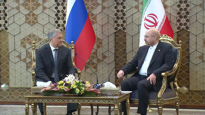 Развитие сотрудничества и противодействие "диктатуре Запада". И всё это – в условиях экономических санкций. Спикер Госдумы Вячеслав Володин сегодня весь день провёл в Иране, встретился с президентом Исламской республики, со спикером парламента, и везде говорили об укреплении отношений между двумя странами, а также о формировании нового, более справедливого миропорядка.