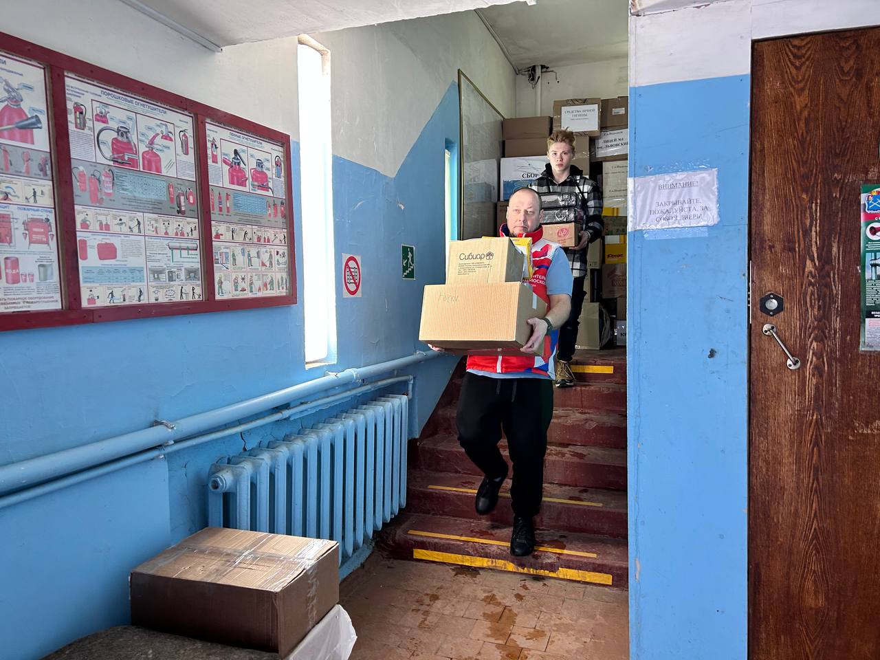 Отвезëт груз Анна Демидова. Многодетная мама, она безвозмездно помогает с доставкой с осени прошлого года. В этот раз Анна забирала вещи не одна, а со своим сыном Максимом.