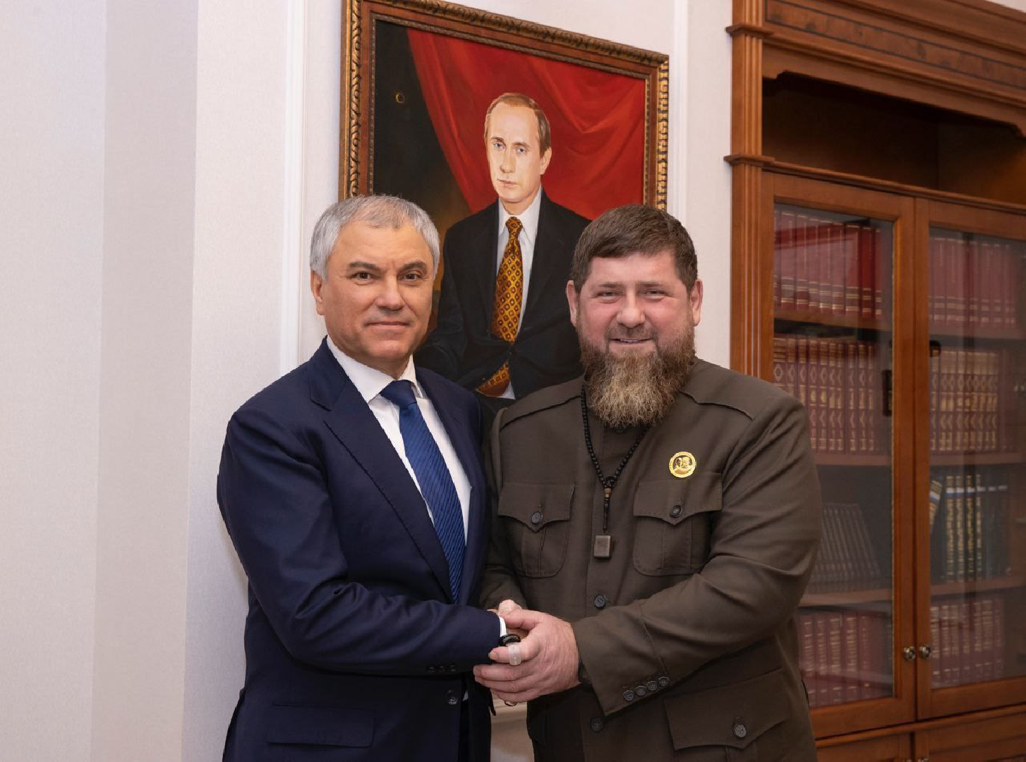 Глава Чеченской Республики Рамзан Кадыров встретился с председателем Госдумы Вячеславом Володиным в Москве. Об этом Кадыров сообщил в своём Telegram-канале. В ходе встречи стороны обсудили вклад депутатов от Чечни в поддержку фронта и участие в переговорном процессе.
