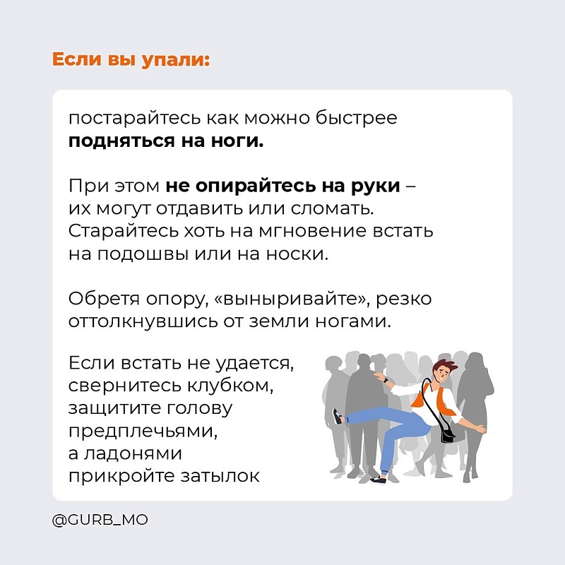 Если вы оказались в толпе или в помещении, где образовалась давка, постарайтесь придерживаться рекомендаций, наглядно представленных на картинках.