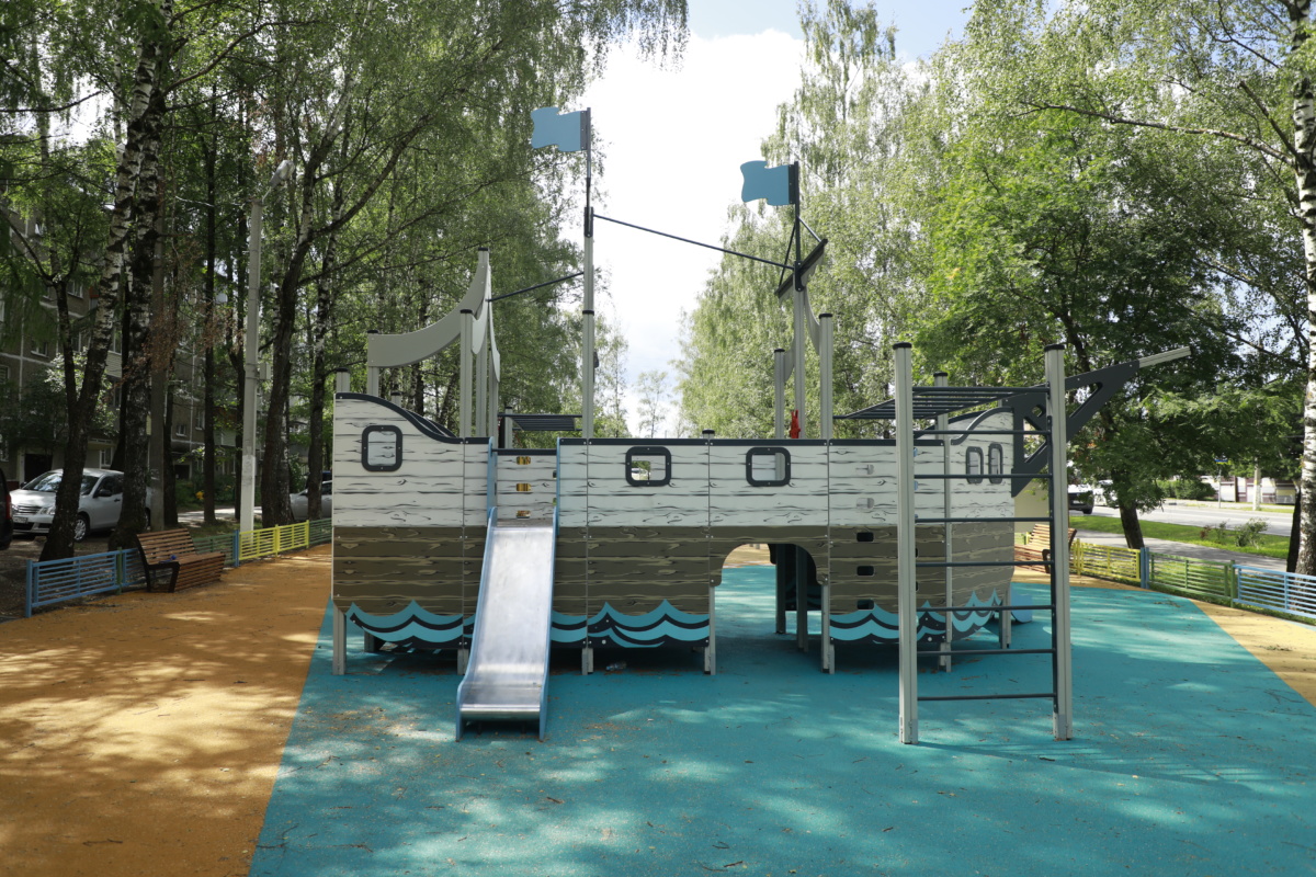 «Губернаторская площадка занимает 450 квадратных метров. Она абсолютно безопасная, оборудована всеми элементами по стандартам, внизу уложено бесшовное прорезиненное покрытие. При установке детских площадок обязательно учитывается мнение жителей, которые могут выбрать тематику игровых площадок. Здесь предпочтение отдали морской идее, поэтому в самом центре городка возвышается корабль, внутри которого продуманы все элементы: горка, лабиринт, игровые модули. В скором времени здесь будет торжественное открытие комплекса, сделаем весёлый праздник для каждой семьи» , — рассказал начальник отдела благоустройства комитета ЖКХ Наро-Фоминского городского округа Павел Шеватурин.