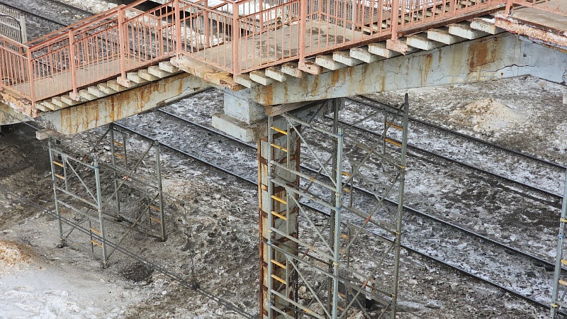 На воскресенском путепроводе ведётся реконструкция лестничных сходов