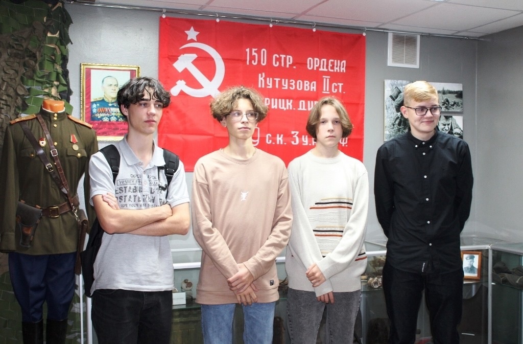 После беседы в лекционном зале для ребят провели экскурсию по залу военной археологии, где хранятся артефакты Великой Отечественной войны, в том числе снаряжение немецких солдат и пропагандистские материалы Третьего рейха.