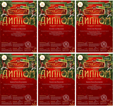 В номинации инструментальное исполнительство лауреатами I СТЕПЕНИ стали: Баранова Оксана, Волкова Анна и Кузьмина Алла в своей возрастной категории.