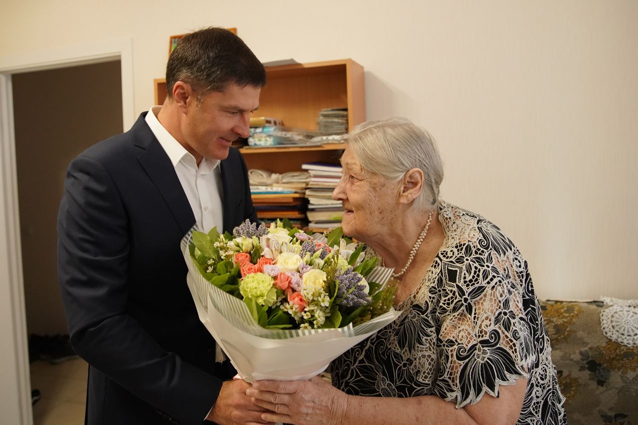 Глава городского округа Люберцы Владимир Волков поздравил с 85-летием Почётного гражданина Люберец, 15-кратную рекордсменку мира по вертолётному спорту Инна Андреевна Копец.