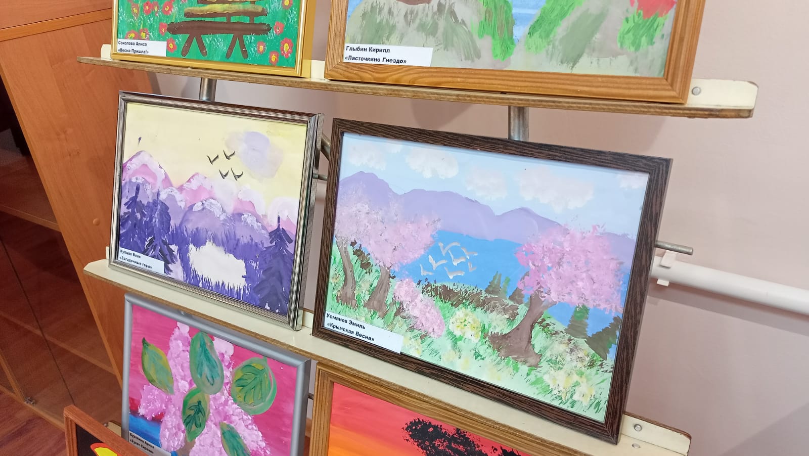 На выставке представлены работы участников кружка «Волшебная кисточка».