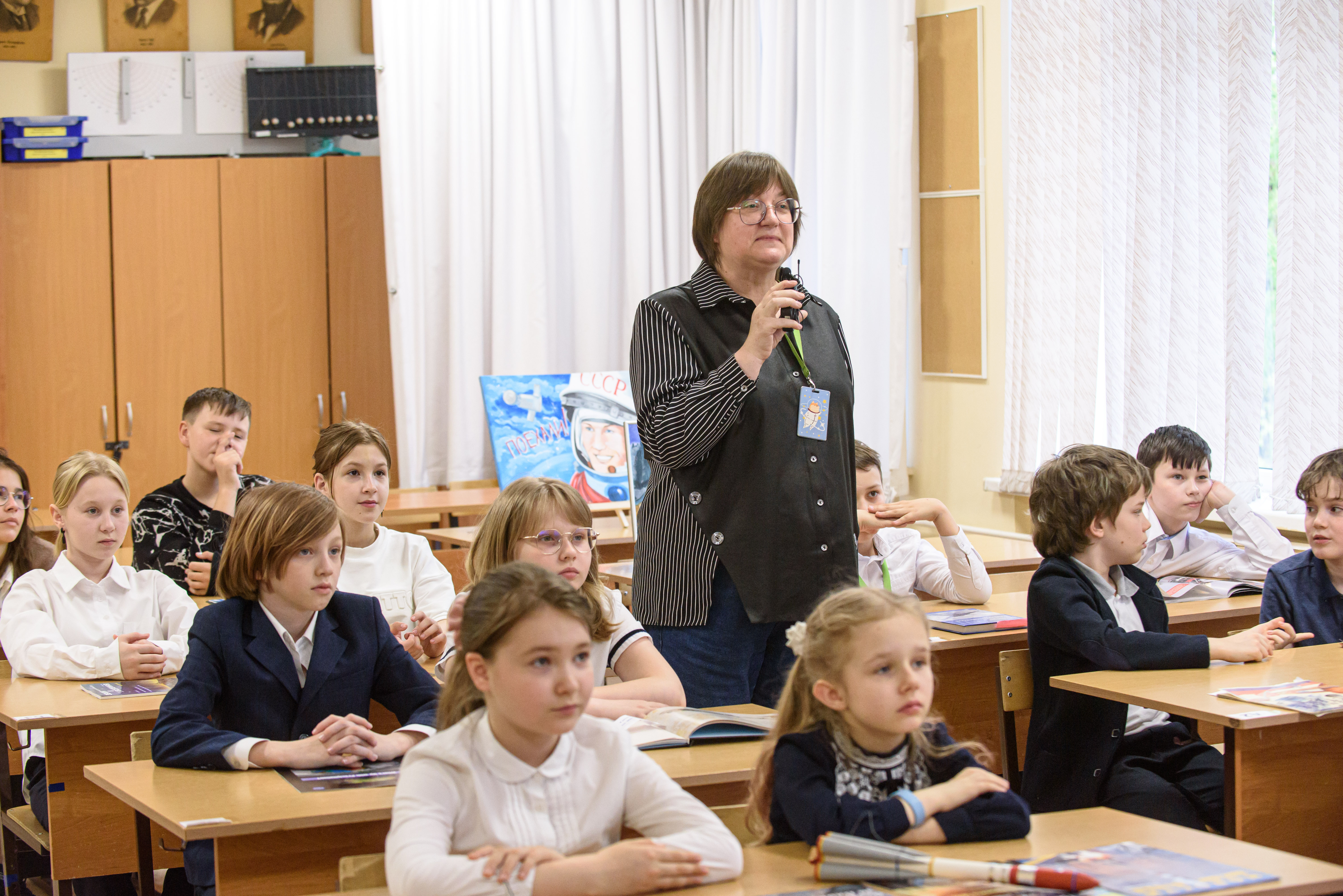 Космический урок – программа Роскосмоса, в которой участвуют реальные космонавты, прямой эфир транслируется на сайте «Роскосмос ТВ», а потом доступен в YouTube. Занятие ведут эксперты и космонавты из тех, что сейчас на Земле, а изюминкой становится прямая связь с космосом. На этот раз урок был посвящён пилотированию: школьники познакомились с принципами движения в атмосфере и космосе, узнали, как управляют космическими аппаратами. «Наземными» экспертами выступили космонавт Сергей Корсаков и инженер-испытатель РКК «Энергия» Евгений Прокопьев, а с борта МКС присоединился космонавт Александр Гребёнкин. Кстати, один из пятиклассников, Платон Костин, был в осенней поездке пушковцев на Байконур, где им довелось видеть Сергея Корсакова. «Там есть аллея космонавтов, где каждый, кто улетает в космос с Байконура, сажает дерево, – вспоминает Бирюкова. – Сергей из ведра поливал своё дерево. К нему подбегают две туристки из Вьетнама и спрашивают: «А вы кто?» Он отвечает: «Садовник!»
